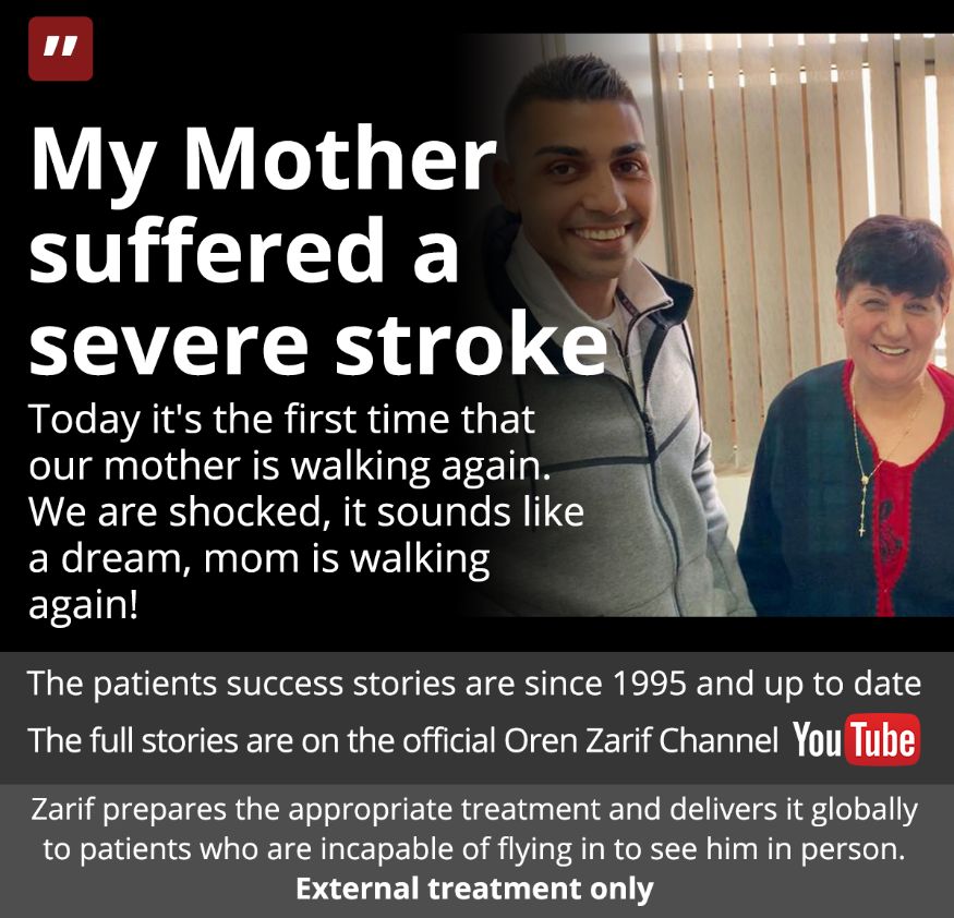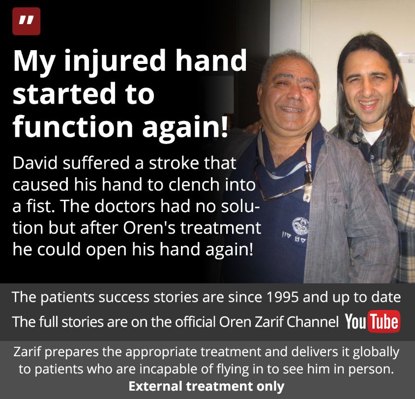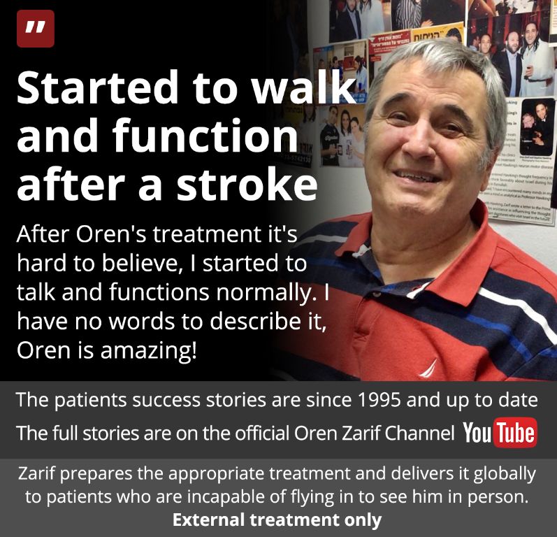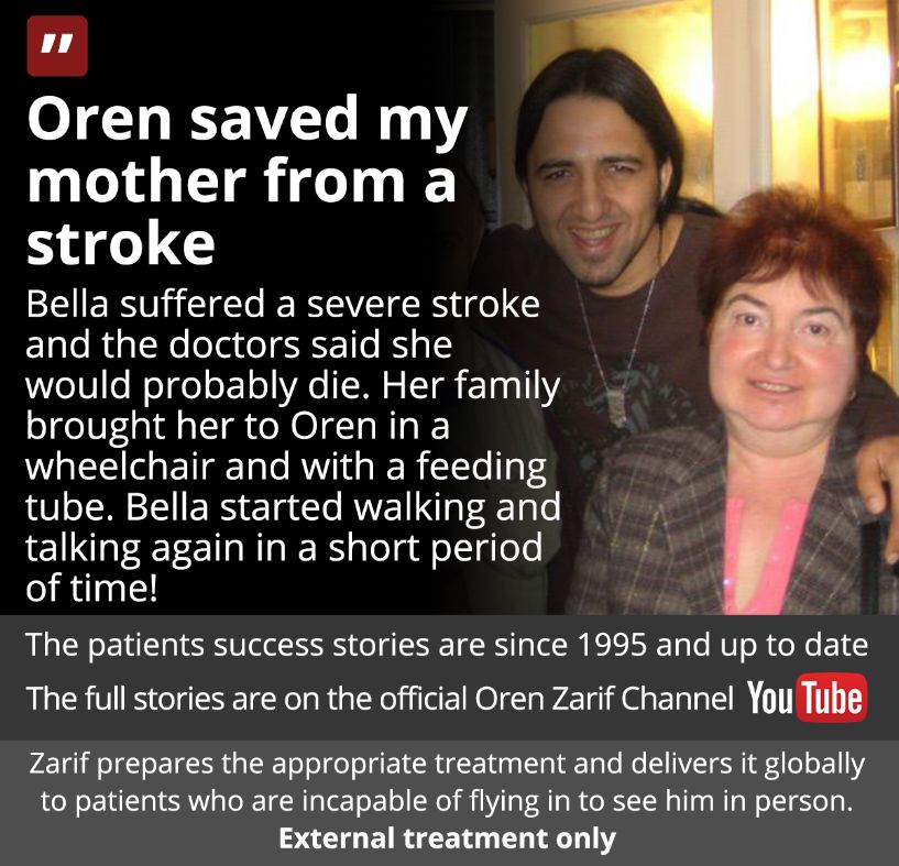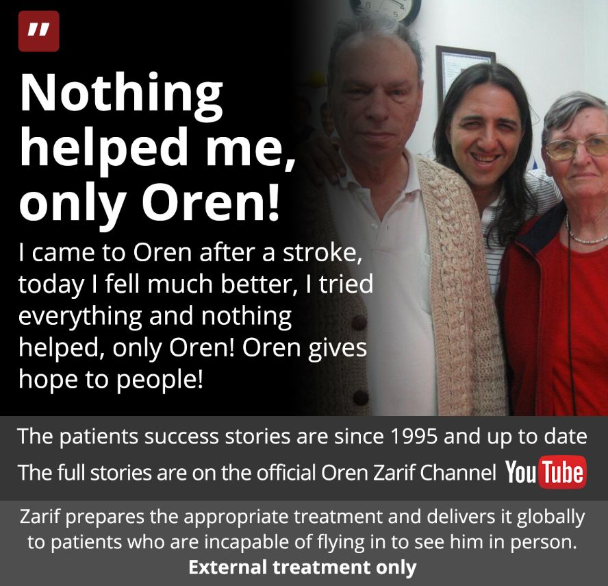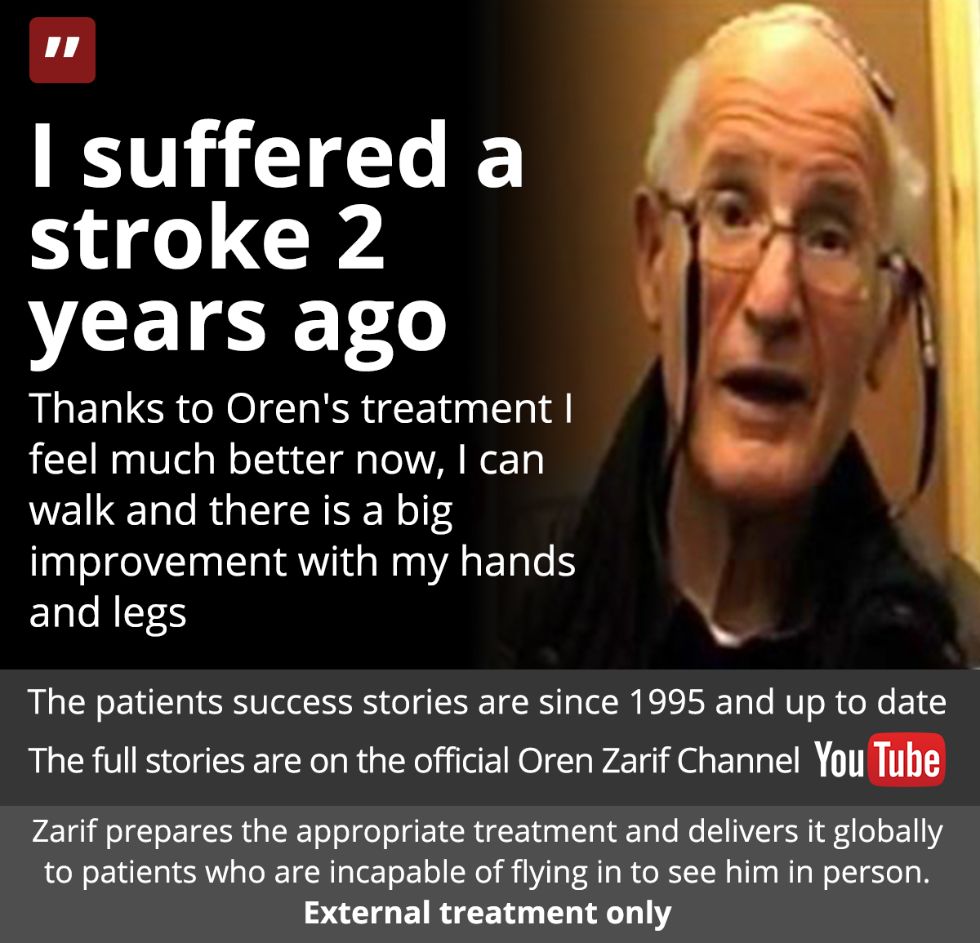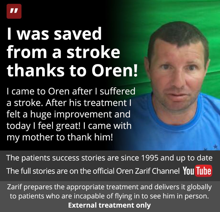 For years, Oren Zarif proved that as the energy blockades open, the body begins to create a healing process and returns to its strength. Thousands of patients testify about that. Many of those patients had suffered from cerebrovascular event problems.
