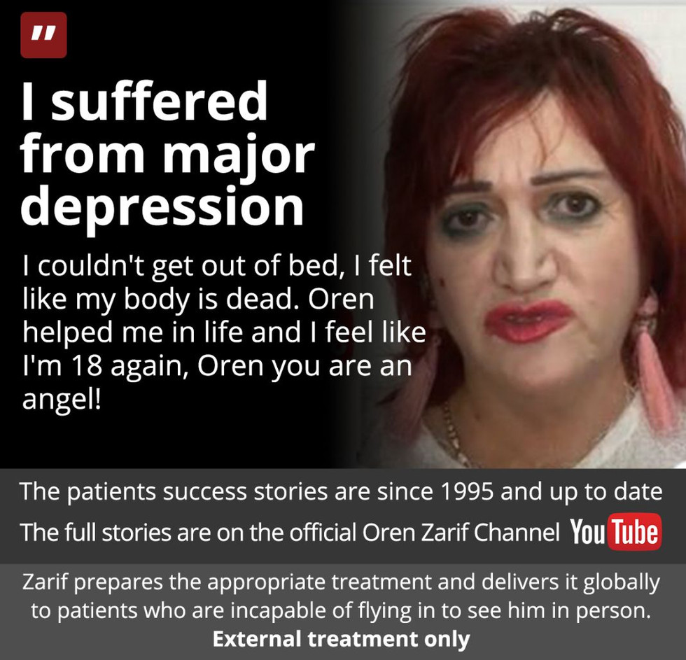 With the unique method developed by Zarif over many years, and with his amazing capabilities, Zarif helped countless patients worldwide that had suffered from depression and anxiety problems