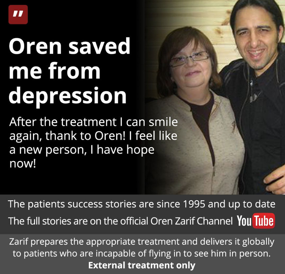 For years, Oren Zarif proved that as the energy blockades open, the body begins to create a healing process and returns to its strength. Thousands of patients testify about that. Many of those patients had suffered from depression and anxiety problems.